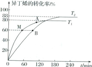 )A.若容器内起始总压为$p_{0}Pa$,则$M$点时用分压变化表示的$v(IB) = 0.01\ {Pa· min^{-1}}$