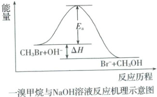 基元反应过渡态理论认为,基元反应在从反应物到反应产物的变化过程中要经历一个中间状态,这个状态称为过渡态。例如,一溴甲烷与$NaOH$溶液反应的过程可以表示为${CH_{3}Br + OH^{-} \longrightarrow [Br·s CH_{3}·s OH] \longrightarrow Br^{-} + CH_{3}OH}$。