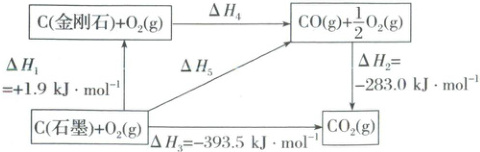 (1)$C(s,石墨) + O_2(g) = CO_2(g) \Delta H_1 = -393.5 kJ · mol^{-1}$