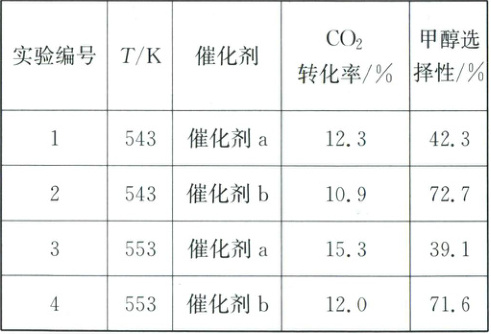)A.相同温度下,该时段内,催化剂b对${CO_{2}}$转化成${CH_{3}OH}$有较高的选择性