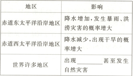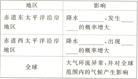 2.× 在厄尔尼诺年,赤道西太平洋沿岸地区往往降水减少,出现干旱的概率增大,因此澳大利亚和菲律宾可能出现干旱灾害。
