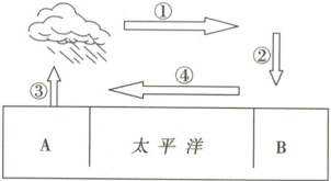 5.D 6.A [第5题,当该环流变弱时,意味着厄尔尼诺现象出现,海—气相互作用发生改变,从而导致全球气候异常。厄尔尼诺年太平洋东岸降水增加;太平洋西岸降水减少,出现干旱的概率增加,南亚位于太平洋西岸附近;厄尔尼诺现象会使秘鲁寒流势力减弱。第6题,箭头①表示高空中大气间热量、水分的传递过程,不参与海洋和大气之间能量的交换。]