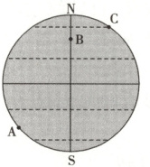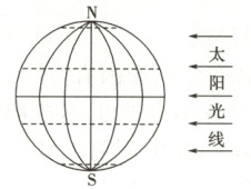 (2)将上题图转换为下图昼夜各半的侧视图,并标注经度。(8分)