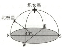 我国某中学天文观测地理兴趣活动小组经常观察天空中的恒星运动规律,该小组某学生于北京时间2024年10月12日21时看到织女星正好位于天顶。此时该地的区时为21时,如图为此时北极星和织女星的位置示意图。读图,完成12~13题。