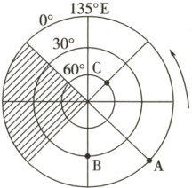 2.推测图示时刻未“沐浴在阳光下”的A城市的地方时约为 (
