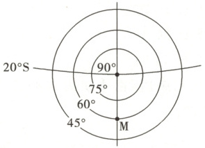 11.A 12.C [第11题,根据图示,同心圆圆心处太阳高度为90°,即太阳直射该地,太阳直射点纬度为20°S,M地太阳高度为60°,与直射点相差30°,故M地纬度应为50°S或10°N,B、D错误。由材料可知,世界时(0时区区时)3点时,该地为正午12点,相差9个时区,根据东加西减原则,该地经度为135°E,A正确,C错误。第12题,太阳直射南半球,北半球为冬季,北印度洋洋流为逆时针流动,A错误;此时接近近日点,地球公转速度为年内较快时段,B错误;太阳直射点在南半球,泰山日观峰日出东南方向,日落西南,C正确;昼长时间是否缩短需要看直射点向南北哪个方向运动,D错误。]