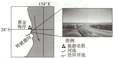 9.C 10.B [第9题,由图可知,特威德河河口修筑堤坝是为了减少洋流对河水的顶托,减少泥沙堆积,保证河口通航能力,C项正确。河口修建堤坝,不能说明港口规模扩大,不能扩大港口的吞吐量,A项错误。堤坝没有拓宽通航航道,不能提高船只通行速度,B项错误。堤坝延伸方向与海岸垂直,不能减小风浪影响,D项错误。第10题,特威德河河口堤坝的修建,使河口北侧海岸泥沙沉积减少,黄金海岸海滩退缩,B项正确。河流径流量未变,不会导致海水倒灌发生,A项错误。对河口鱼类资源没有明显影响,C项错误。堤坝北侧泥沙堆积减少,D项错误。]