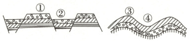 4. 在图中①~④四种地质构造中,可能找到石油和天然气资源的是 (
