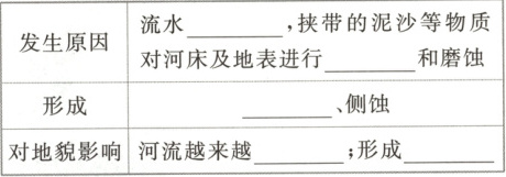 )2.一般而言,河流在凸岸侵蚀,凹岸堆积。(