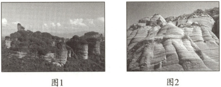 (1)图1丹霞地貌露出“腰身”是因 ( )