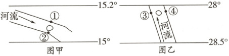 )6. 下面两幅图中,两条河流下游各有一个小岛,未来小岛最可能连接的堤岸是 (