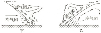 问题1 提示:冷锋过境;甲图。