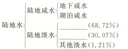 3.× 在陆地淡水中占比重最大的是冰川,河流水所占比重很小。