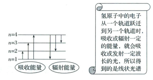 b. 阐明了原子光谱源自核外电子在能量不同的轨道之间的跃迁,指出了电子所处的轨道的能量是