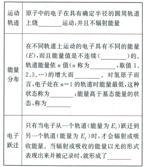 1. 原子光谱是线状光谱,是由不连续的谱线组成的,这表明 (