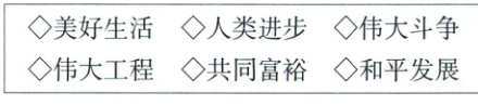 从下列方框中选择两个最符合材料主旨的关键词,并运用《中国特色社会主义》知识,写出你的感想。