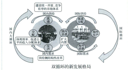 3.提示:× 构建以国内大循环为主体、国内国际双循环相互促进的新发展格局,不是封闭的国内循环,而是开放的国内国际双循环。