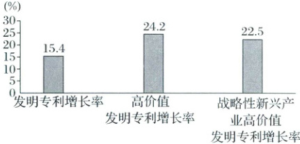 [典例2] (2024·江苏卷)2022年我国专利密集型产业劳动生产率为31.3万元/人,是非专利密集型产业劳动生产率的2.1倍。2023年我国授权发明专利与上一年相比大幅增长(如图所示),专利密集型产业增加值首次突破15万亿元,占国内生产总值的比重达到12.7%。材料表明(
