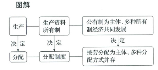 决定分配方式。我国坚持公有制为主体、多种所有制经济共同发展,决定了分配制度必然是按劳分配为主体、多种分配方式并存