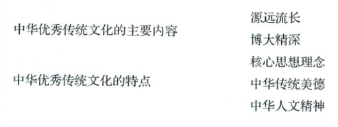 主要内容:核心思想理念、中华传统美德、中华人文精神等。列举其中一方面表述即可。