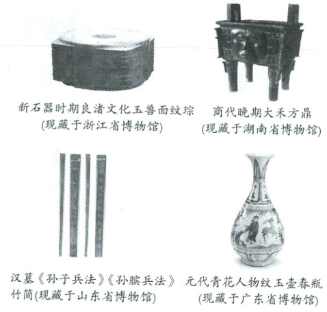 C 题中呈现了从新石器时期到元代的文物,体现了中华文化文脉赓续,这些文物表达的内容十分丰富,展现了中华文化的博大精深,②符合题意;题中呈现的文物制造工艺越来越精细,体现了中华文化的发展与进步,对于研究文明演进具有重要意义,③符合题意;题中只是展示了文物,并没有涉及优秀传统文化的创造性转化和创新性发展,①不符合题意;文物在博物馆展出,其文化内涵不会发生变化,不会丰富和拓展中华文化的内涵,④观点错误。故本题选C。