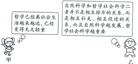 乙 自然科学和哲学社会科学二者并不是相互排斥的关系,而是相互补充、相互促进的关系,而且自然科学越发展,哲学社会科学越重要