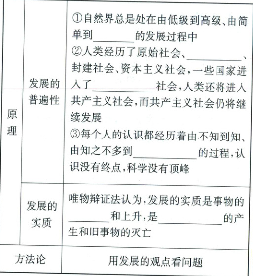 一、1.复杂 奴隶社会 社会主义 知之较多 前进 新事物
