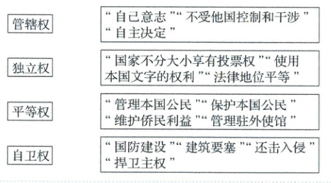 (1)主权国家享有独立权、管辖权、平等权、自卫权等基本权利。