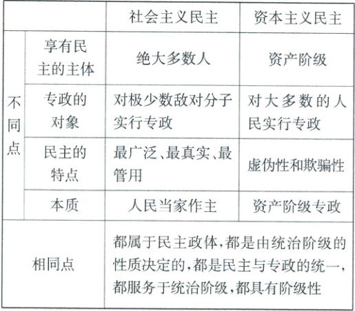 结合材料,分析资本主义民主与社会主义民主