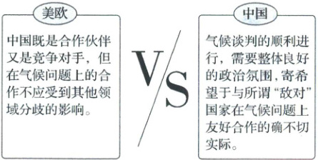 [拓展1] 作为全球主要经济体,中国和美欧国家对全球气候治理有着重要影响。以下为两方关于气候合作的观点。由此可见 ()