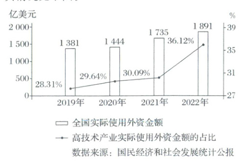 2. (2023·广东卷)2019—2022年中国实际使用外资情况见下图。