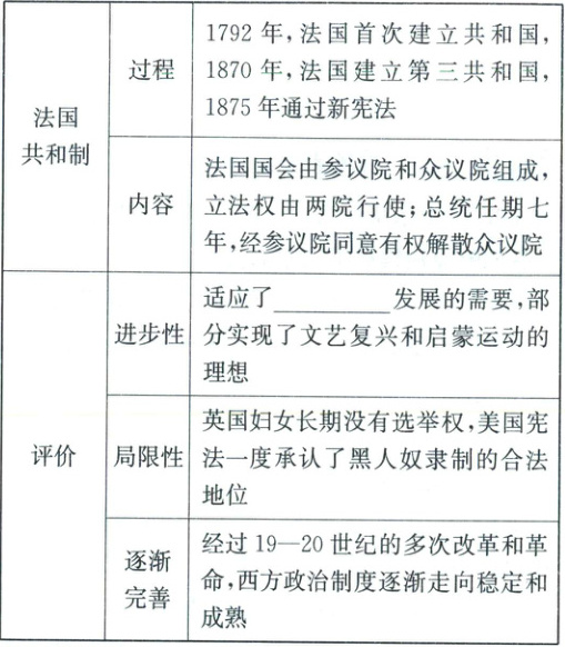 知识点三 西方资本主义政治制度的产生与发展