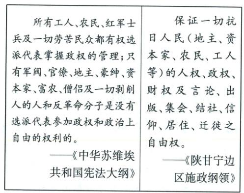 2.A “三三制”原则以及关于选举权和被选举权的相关内容规定,可以使更多致力于抗日和民主的中国人参与政权建设,有利于团结抗日革命根据地的各阶级、各阶层人民团结合作共同抗日,故选A项。