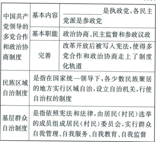 1.人民代表大会 2.中国共产党 3.中国共产党领导 社会主义