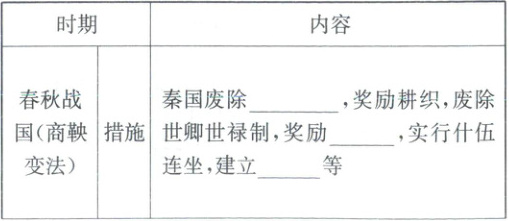 (1)商鞅变法是确立封建制度,促进国家统一,推动社会转型的改革。