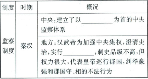 3. 监察制度:秦汉:御史大夫;汉武帝:刺史制度。