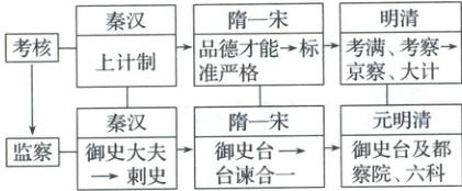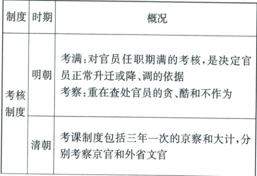 明清:考核(考满、考察→京察、大计)、监察(元明清:御史台及都察院、六科)