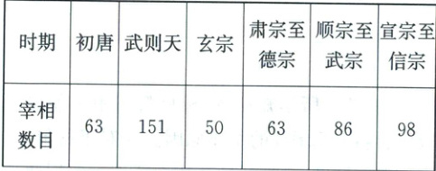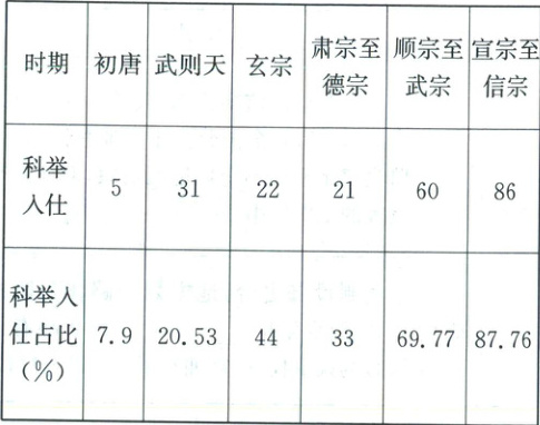 1. (2024·广东深圳高二期中)下表是唐代宰相数目及科举入仕数据表(单位:人)。据此可推知(