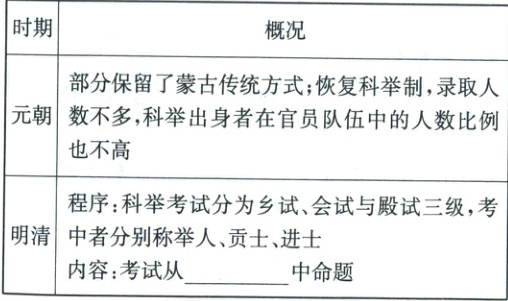 |元朝|部分保留了蒙古传统方式;恢复科举制,录取人数不多,科举出身者在官员队伍中的人数比例也不高|