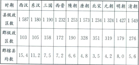 材料二 古代中国历代县级、郡级政区数变化统计表(单位:个)