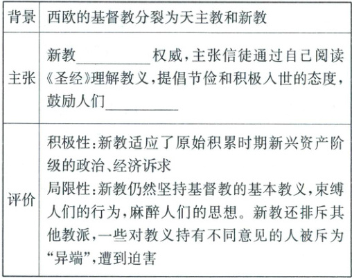 思考:根据材料并结合所学知识,分析清教的主张及其积极意义。