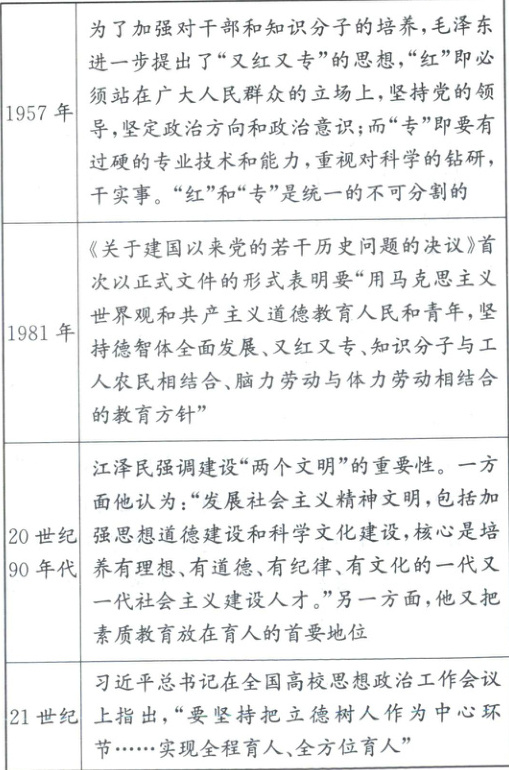 阐释:新中国的人才培养观经历了“又红又专”、德才兼备,突出素质教育,再到立德树人的演变过程。