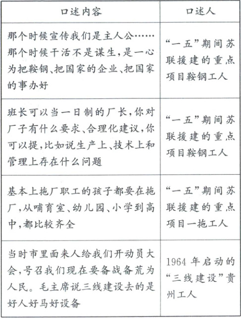 (2)研究新中国工业建设时,你如何看待工人口述史的史料价值。