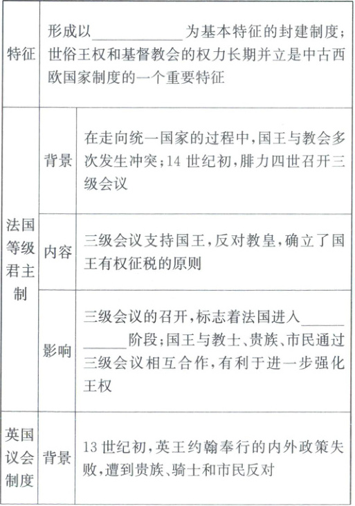 知识点二 中古西欧的封建制度