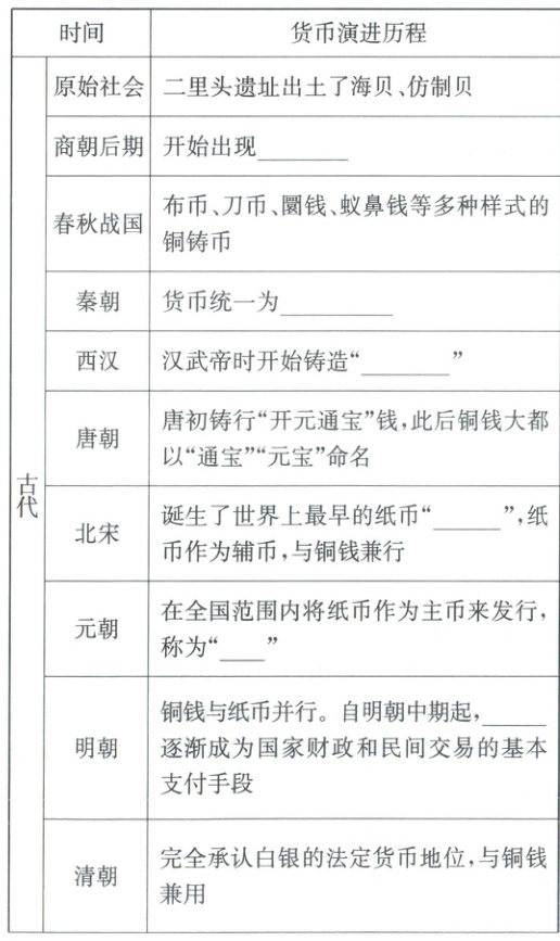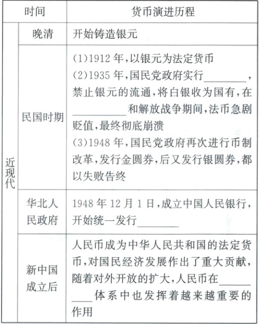 (2)1935 年,国民党政府实行法币改革,禁止银元的流通,将白银收为国有,在抗日战争和解放战争期间,法币急剧贬值,最终彻底崩溃