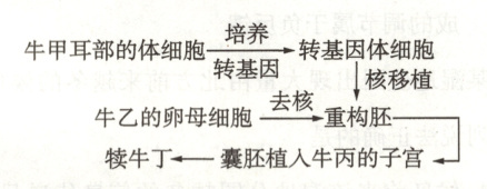 14. 利用动物体细胞核移植技术培育转基因牛的过程