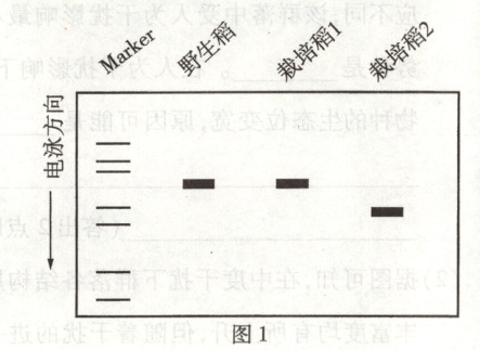 (3)科研小组采用PCR技术,扩增出野生稻和栽培稻Bh/bh基因的片段,电泳结果见图1。