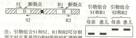 注:引物组合 $ S1$ 和 $ S2$、$ R1$ 和 $ R2$ 可分别用于对正常基因 D 和 H 序列的扩增检测
