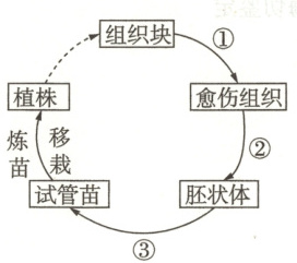 4. 图示一种植物组织培养周期,①~③表示相应过程。下列相关叙述错误的是