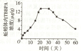 错误项分析:据图可知,实验结束时蚯蚓体内仍含有一定量的TBBPA,若该蚯蚓被其他捕食者所食,TBBPA会沿食物链传递,C错误。